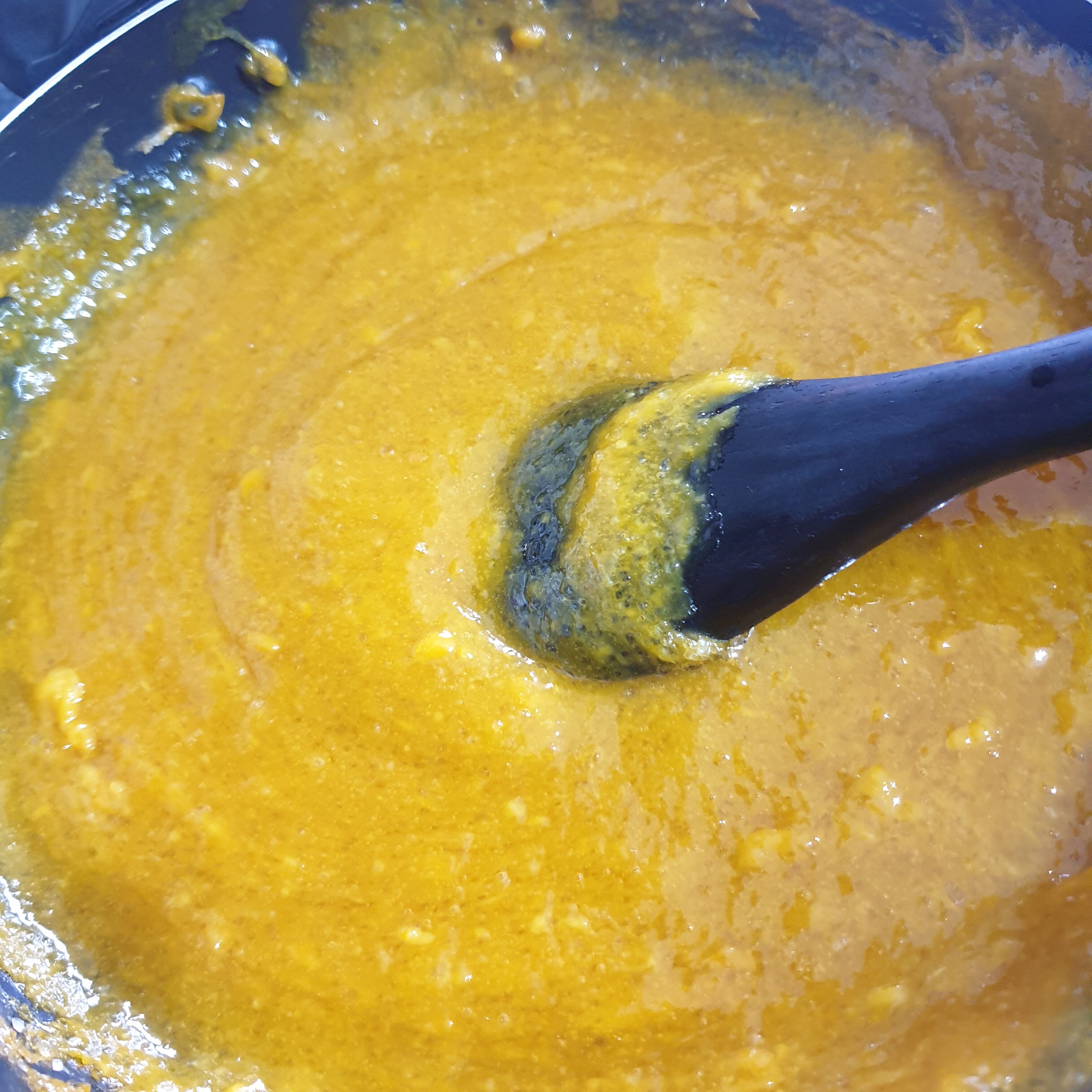 Cook for 3-4 minutes, or until the mango puree starts to bubble.